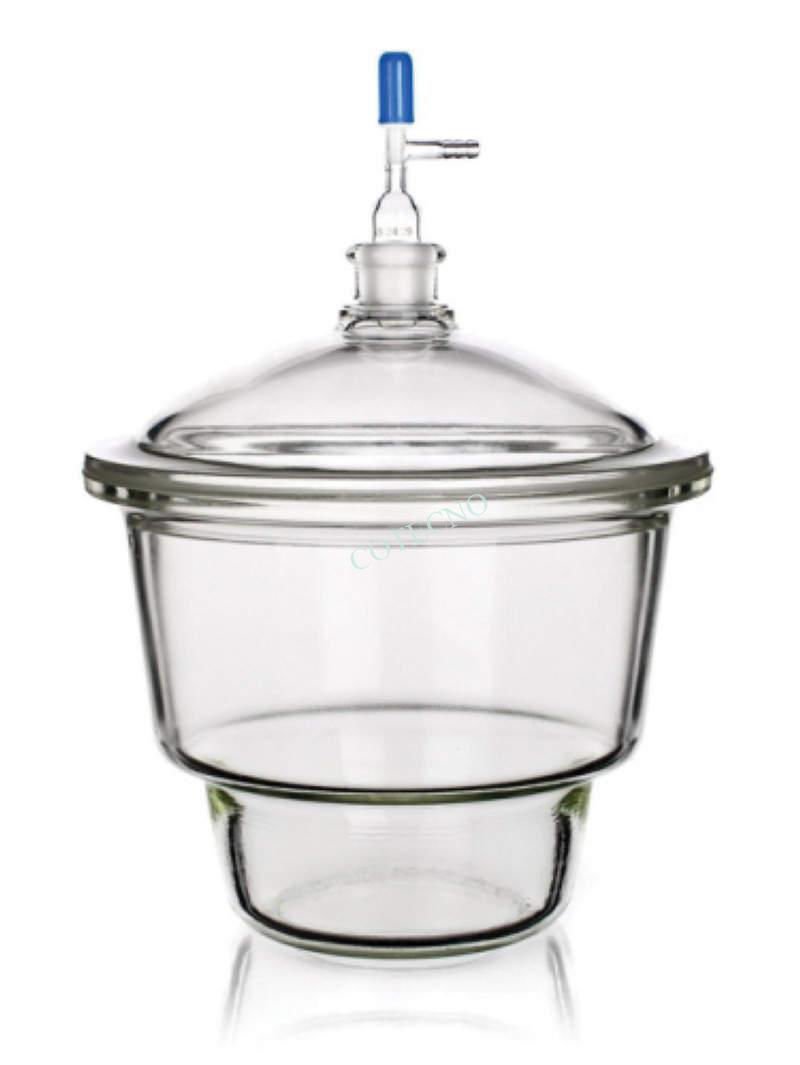Fabricado en vidrio borosilicato de alta resistencia, ideal para el secado y almacenamiento de sustancias sensibles a la humedad. Apto para uso bajo vacío, con tapa esmerilada y válvula de seguridad. Disponible en varios tamaños.