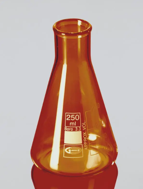 Matraz, ámbar, cónico, graduado, boca estrecha (Erlenmeyer), ASTM E-438, ISO 1773.