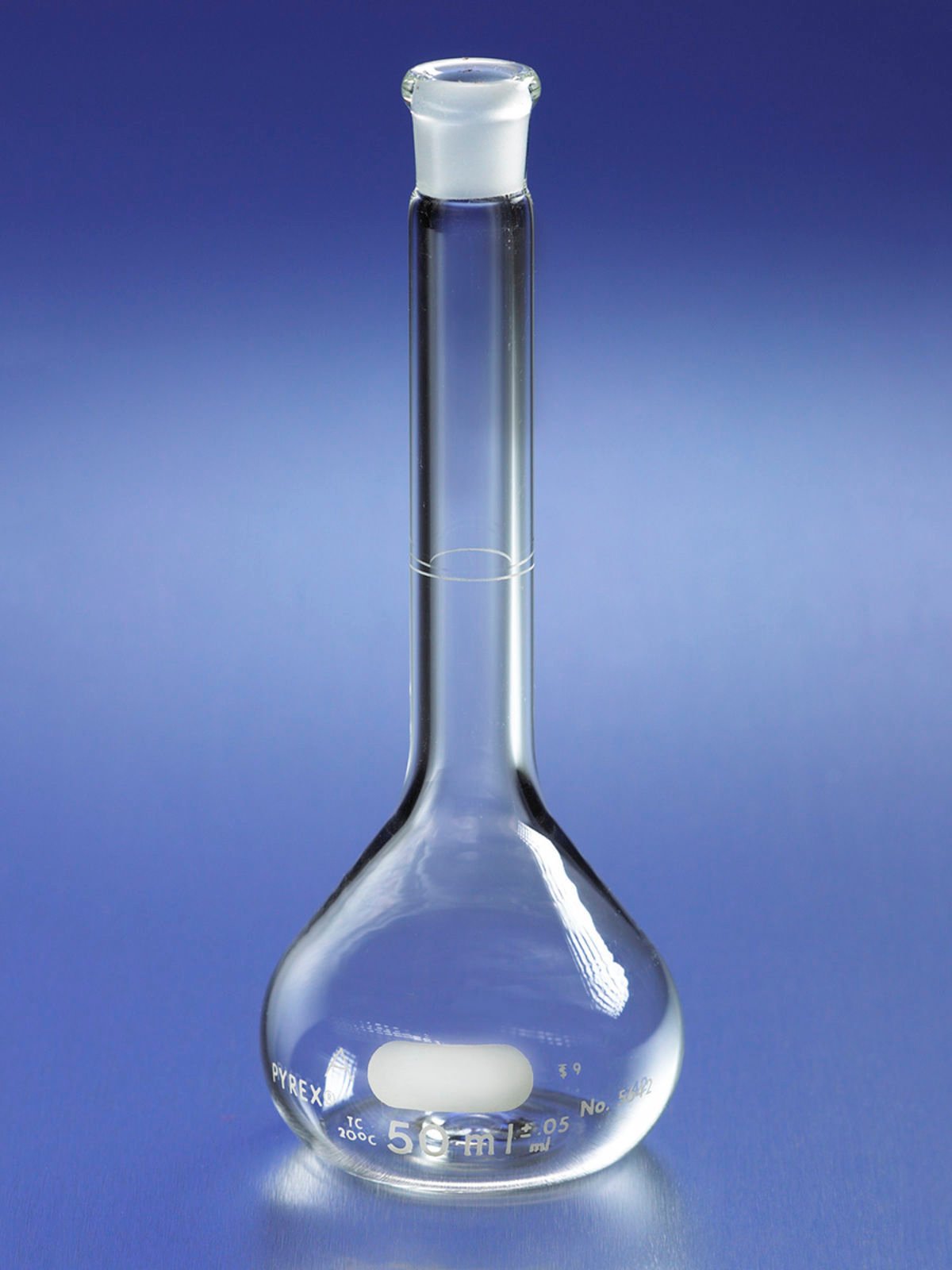 Estos matraces volumétricos PYREX® Clase A tienen cuerpos soplados a máquina a los que se les sellan cuellos de tubos pesados con cuentas pesadas, labrados para tapones de polietileno cónicos estándar N° 13. Los tapones lineales de polietileno de alta densidad están fabricados con un fondo cerrado para ajustarse a las dimensiones del tapón cónico estándar. Para tapones de repuesto, consulte el n.º 7624. La línea de graduación es nítida y permanente y las letras mayúsculas blancas grandes hacen que la inscripción sea fácil de leer. Estos matraces volumétricos de Clase A se han fabricado según las tolerancias de Clase A establecidas por ASTM E-694 para aparatos volumétricos, ASTM E-542 para calibración de aparatos volumétricos y ASTM E-288 para matraces volumétricos.