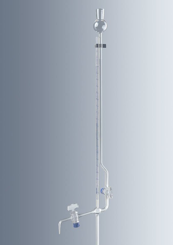 Fabricadas de vidrio borosilicato 3.3 según DIN EN ISO 385. Alta resistencia química, Dilatación de calor mínima y por lo tanto, elevada resistencia a cambios de temperatura clase AS (vaciado rápido, con aforos en puntos principales). Aajustadas «EX» (por vertido) con graduación azul y franja Schellbach. Esta franja al dorso del aparato facilita la lectura exacta a la altura del punto más bajo del menisco.